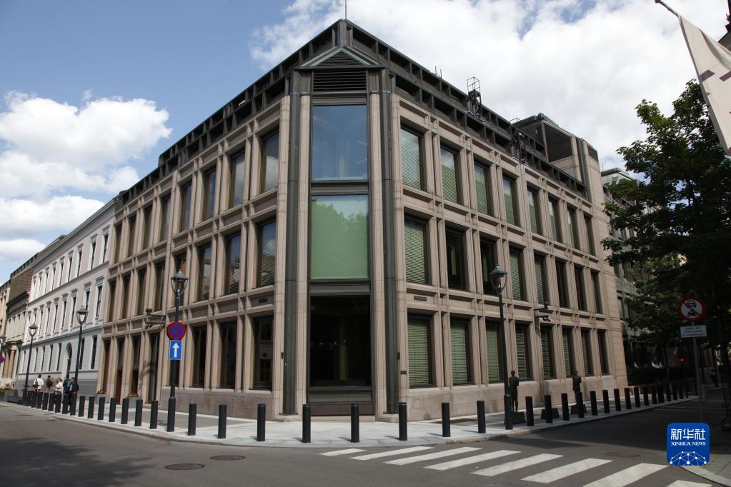 这是6月22日在挪威首都奥斯陆拍摄的挪威央行。