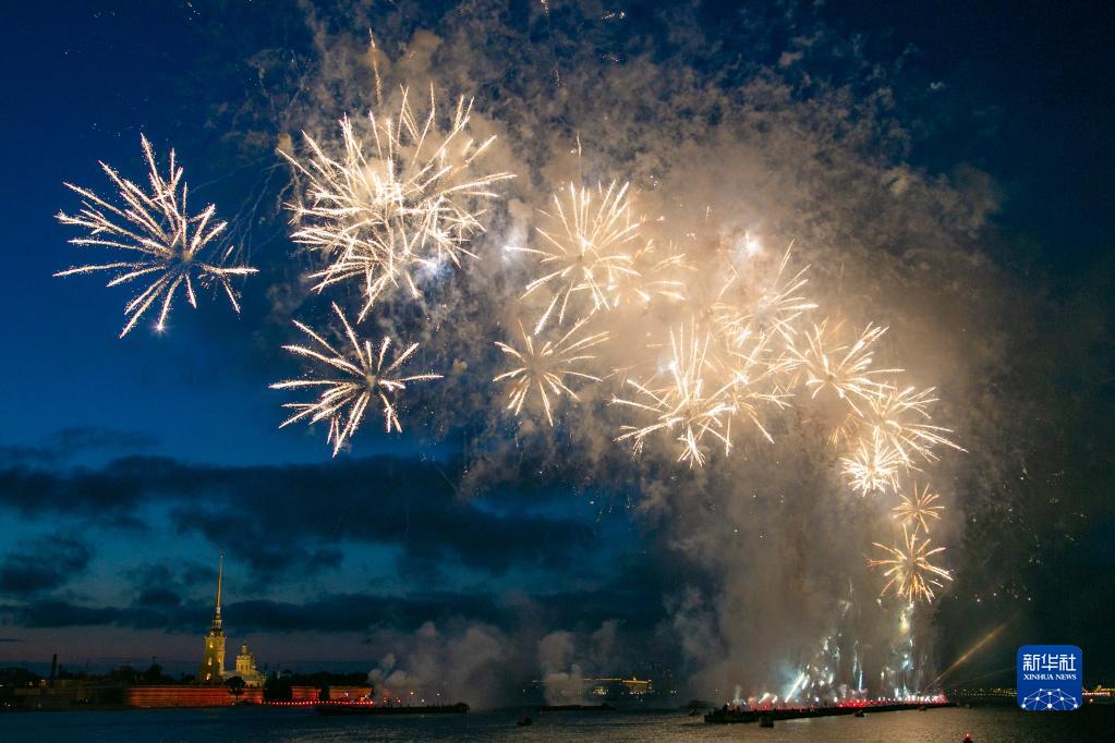 6月24日晚至次日凌晨,俄罗斯圣彼得堡迎来一年一度的“红帆节”。节日期间,冬宫广场上演大型音乐会,一艘“红帆”在漫天烟花的映衬下驶过涅瓦河,庆祝中学生毕业、走向人生新起点。