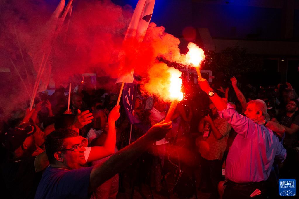 6月25日,希腊新民主党支持者在雅典庆祝该党派赢得选举。