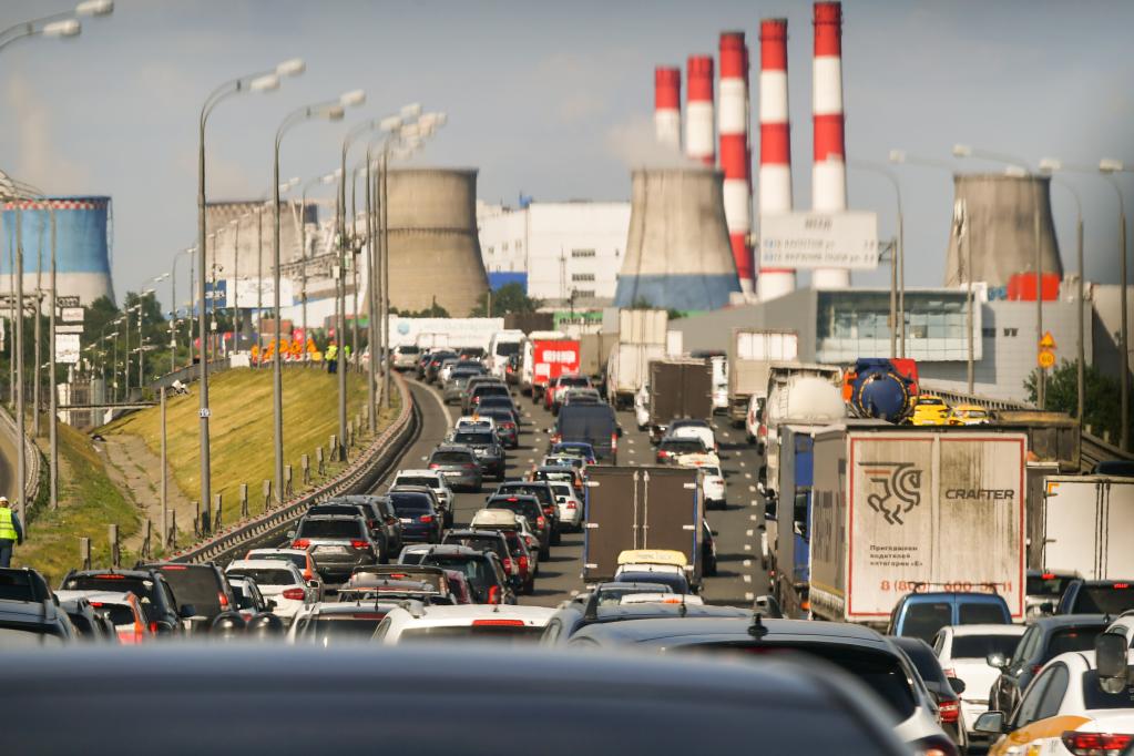 这是6月25日拍摄的处于拥堵状态的俄罗斯莫斯科道路。