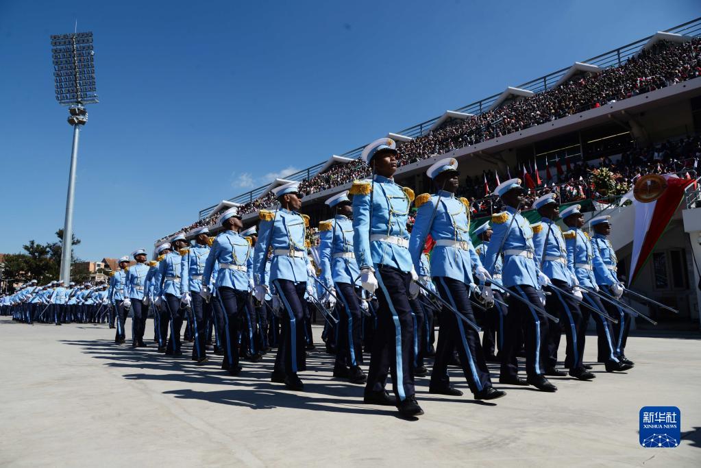当日,马达加斯加举行国庆日阅兵活动,庆祝独立63周年。新华社发(西塔卡·拉乔纳里松摄)