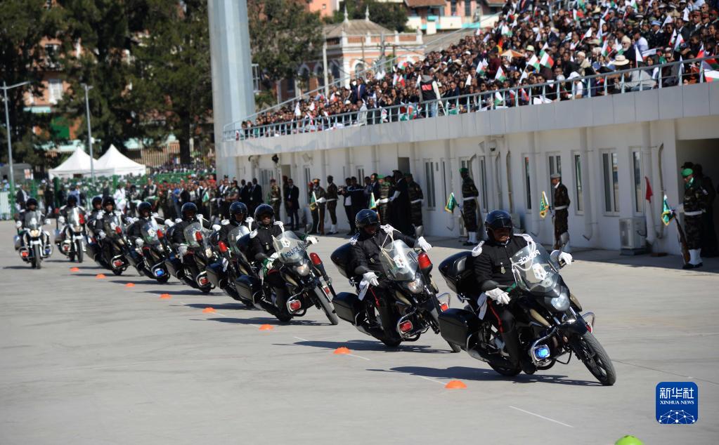 当日,马达加斯加举行国庆日阅兵活动,庆祝独立63周年。新华社发(西塔卡·拉乔纳里松摄)