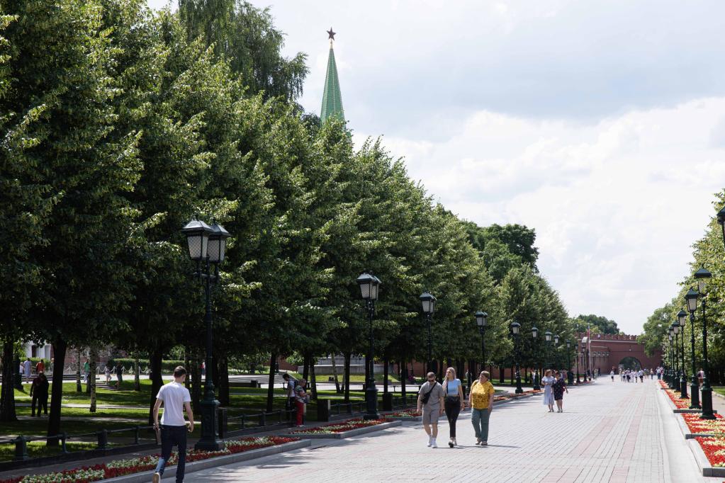 6月26日,在俄罗斯首都莫斯科,人们在红场附近游览。新华社记者白雪骐摄