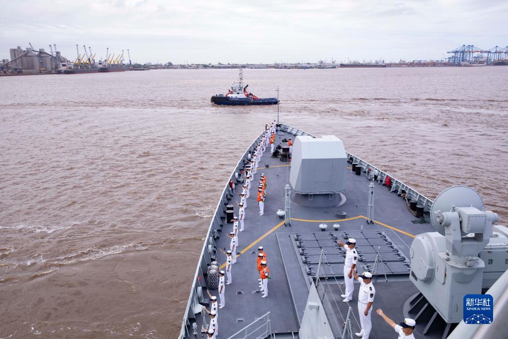 6月26日,中国海军第43批护航编队离开科特迪瓦阿比让港。新华社发(吴亢慈摄)