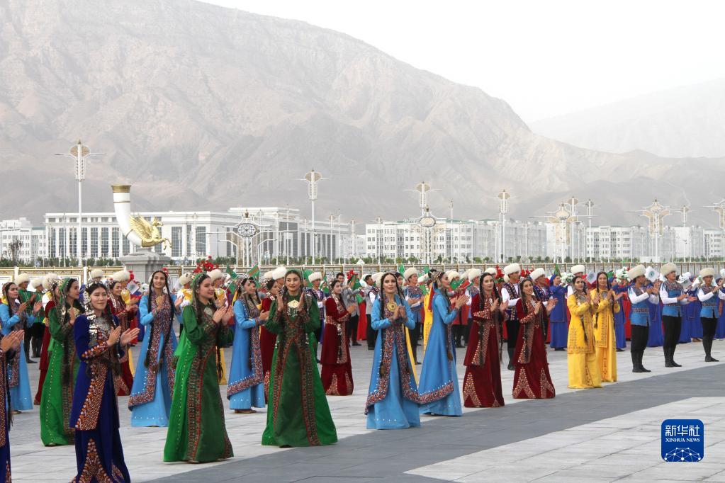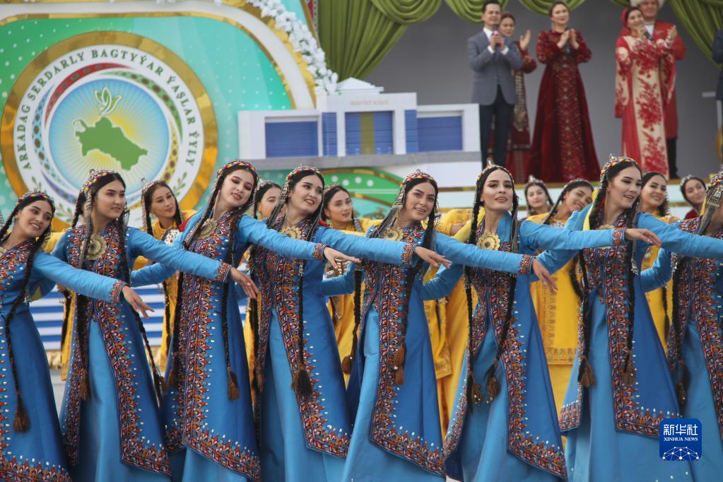 6月29日,土库曼斯坦举行盛大仪式,庆祝该国全新建造的智慧城市阿卡尔达格落成。这是当天拍摄的落成仪式上的表演。新华社记者 魏忠杰 摄