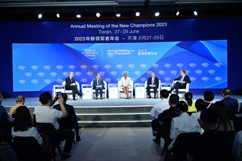 6月29日,在第十四届夏季达沃斯论坛上拍摄的“实践中的竞合关系”对话现场。(新华社记者李鑫摄)