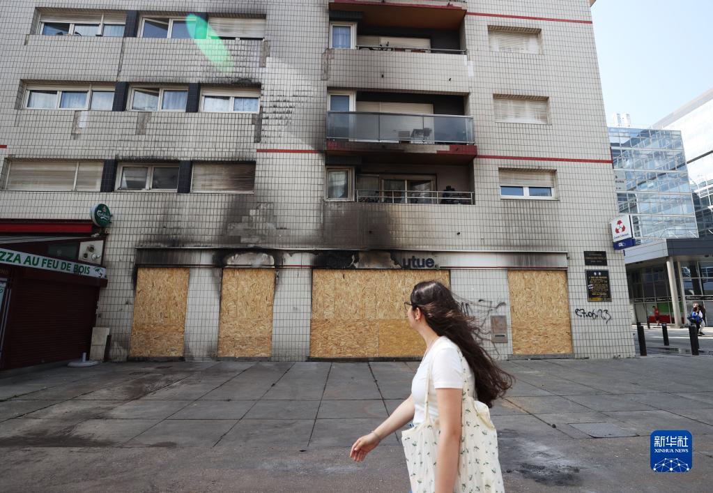 6月30日,在法国上塞纳省楠泰尔市,一家银行所在的建筑被纵火破坏。