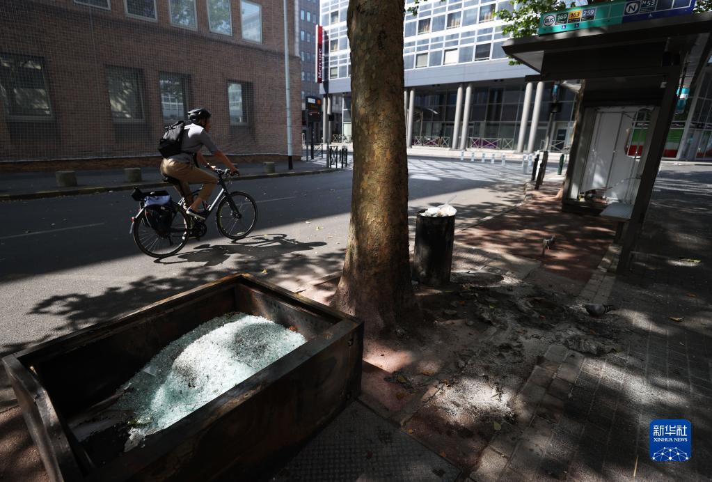 6月30日,在法国上塞纳省楠泰尔市,一处公交站被示威者毁坏。