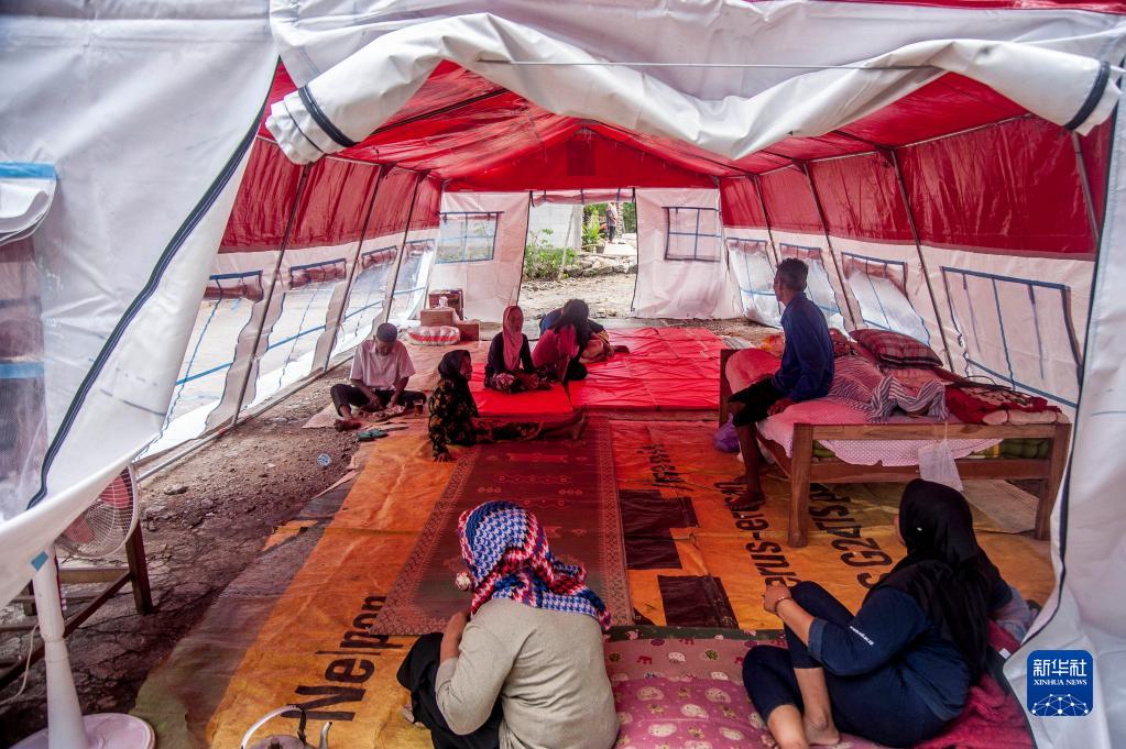 7月1日,在印度尼西亚日惹特区帕卡雷霍村,人们在临时避难所内躲避余震。