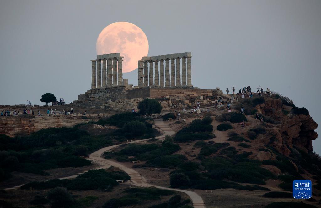 7月2日,一轮满月出现在希腊苏尼翁的海神庙遗址上空。