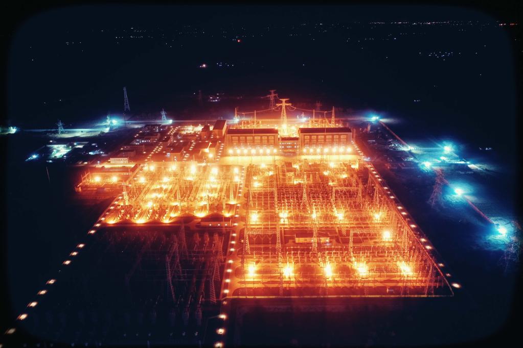 这是2021年4月10日在巴基斯坦东部旁遮普省首府拉合尔拍摄的中巴经济走廊默拉直流输电工程拉合尔换流站夜景。新华社发(中国国家电网有限公司供图)