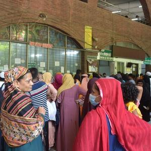 7月4日,在孟加拉国达卡一处医院,人们等待就医。