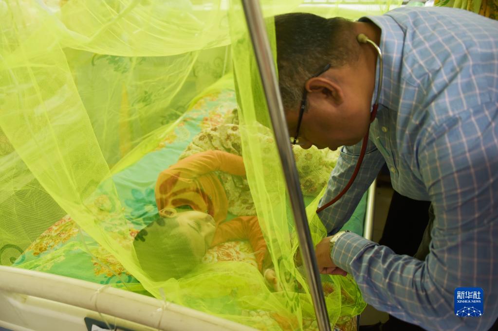 7月4日,在孟加拉国达卡一处医院,一名医生为登革热患者治疗。