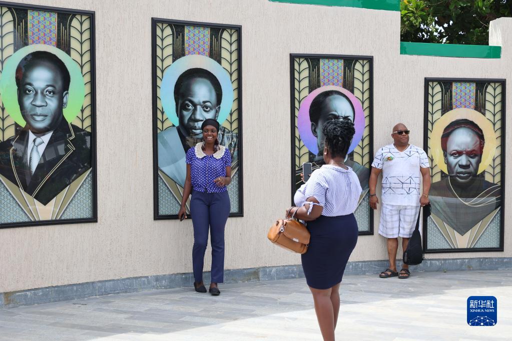 7月4日,游人在位于加纳首都的恩克鲁玛陵园内参观。