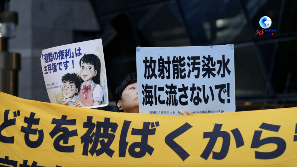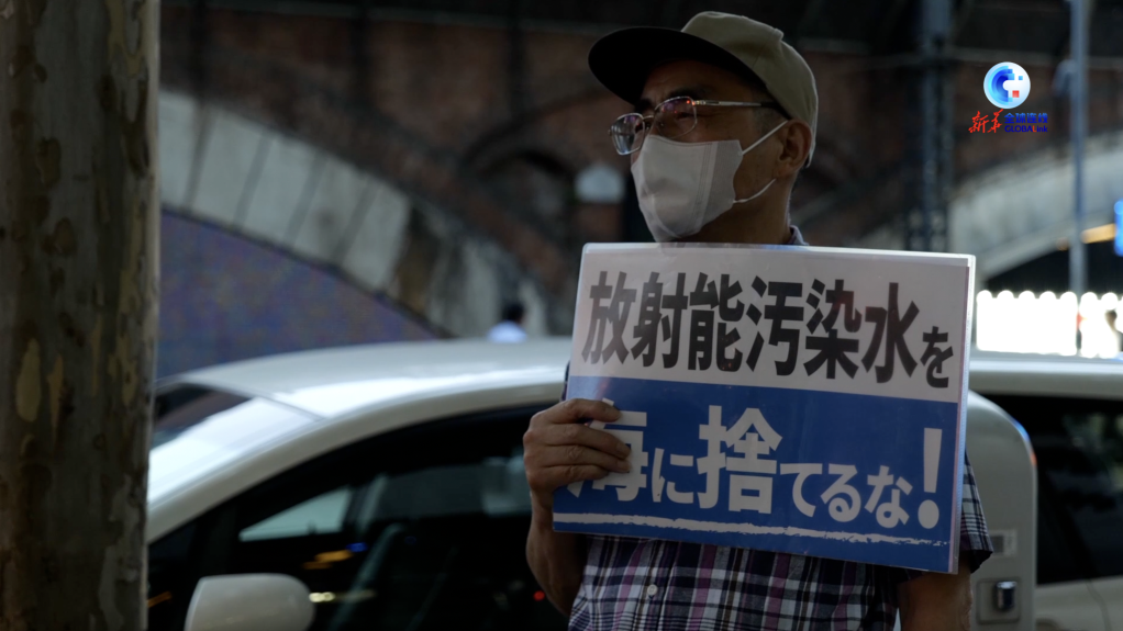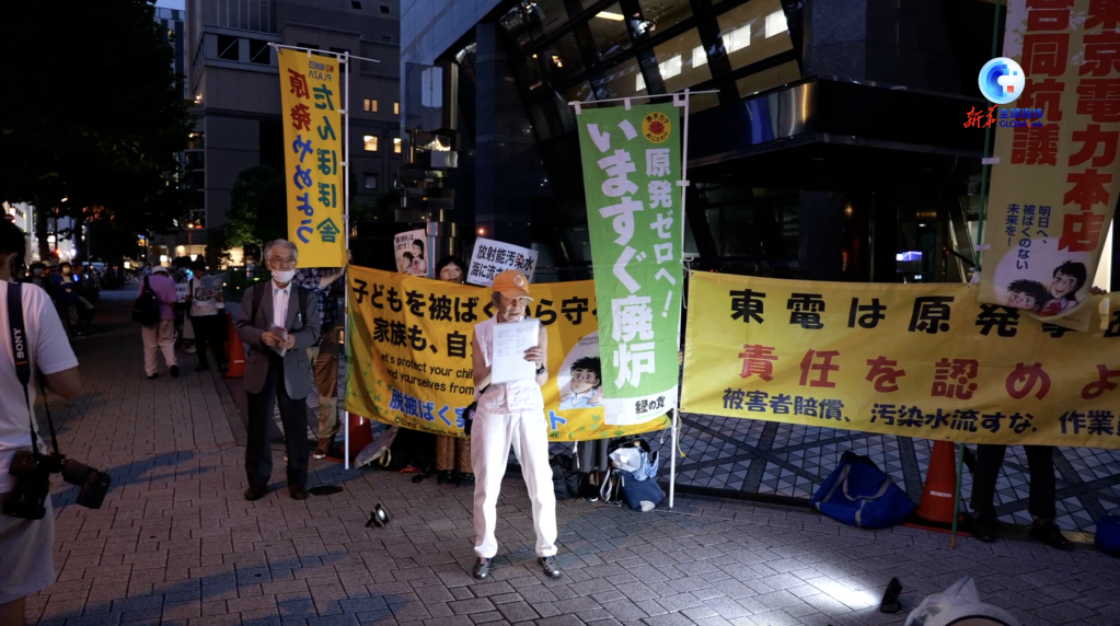 当天,“经产省前帐篷广场”等日本民间组织手持“别把核污染水排放入海”“不要污染大家的海洋”等标语,在东电公司总部外举行抗议活动。