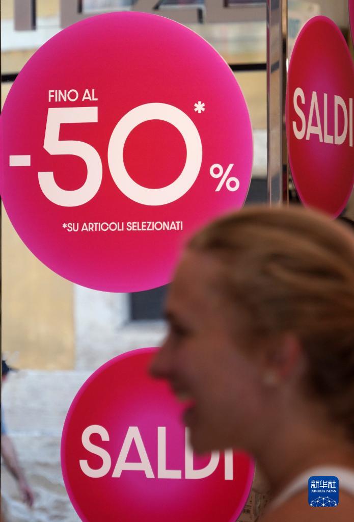 这是7月6日在意大利罗马拍摄的夏季打折广告牌。