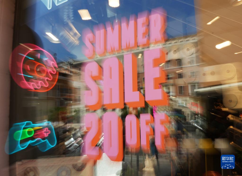 这是7月6日在意大利罗马拍摄的夏季打折广告牌。