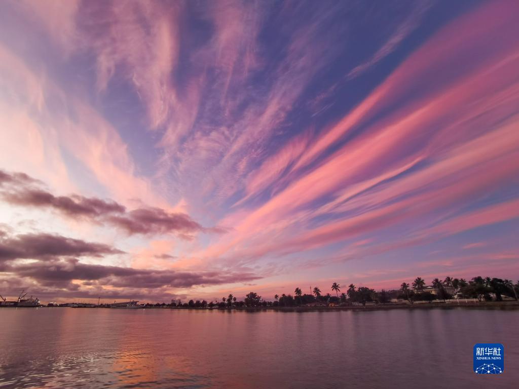这是7月5日在汤加首都努库阿洛法拍摄的朝霞。