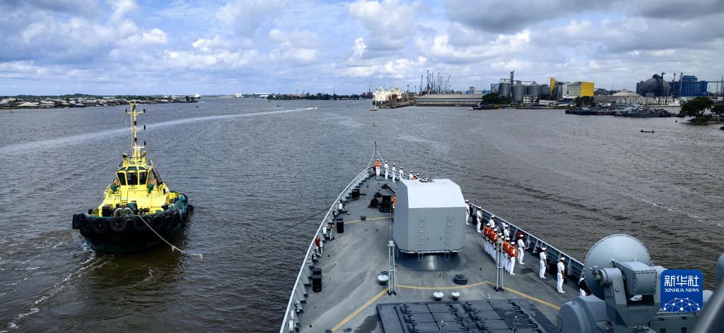 7月6日,南宁舰驶离尼日利亚拉各斯阿帕帕港。新华社发(吴亢慈 摄)