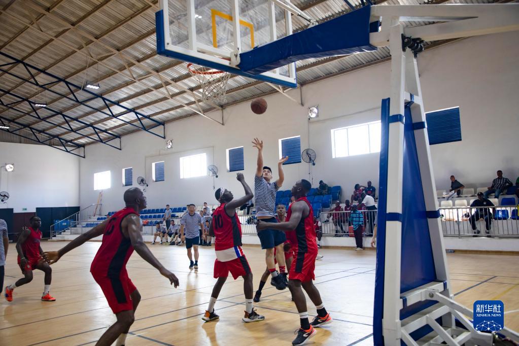 7月3日,在尼日利亚拉各斯,中国编队官兵与尼日利亚海军官兵进行篮球友谊赛。新华社发(刘哲浩 摄)