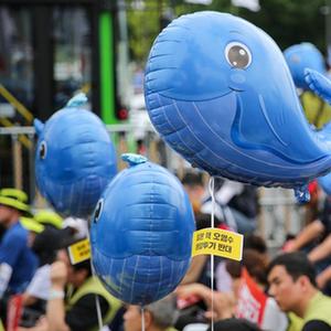 7月8日,民众在韩国首尔参加集会,反对日本核污染水排海。韩国市民团体“阻止日本放射性污染水排海全国行动”8日举行今年5月以来的第四次大规模集会。人们手持鲸鱼模样的蓝色气球,举着“反对排放放射性核污染水”等标语,对日本政府不顾邻国及国际社会担忧执意推动核污染水排海计划表示愤怒。新华社记者 王益亮 摄
