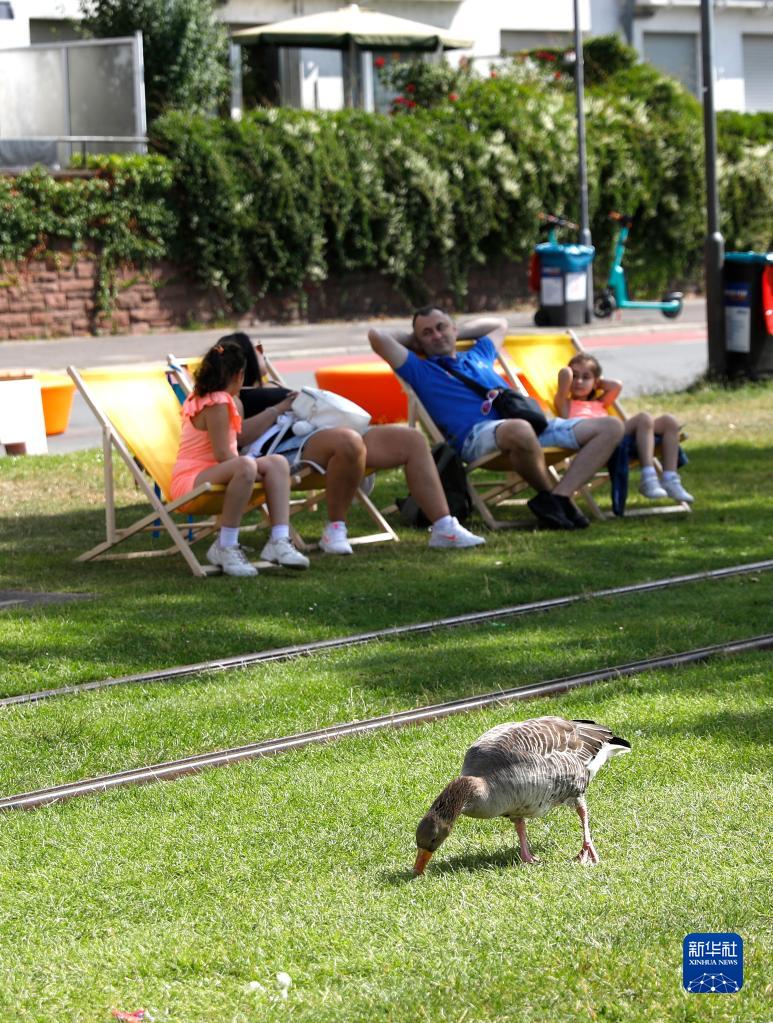 7月8日,人们在德国法兰克福一处草坪上休闲。