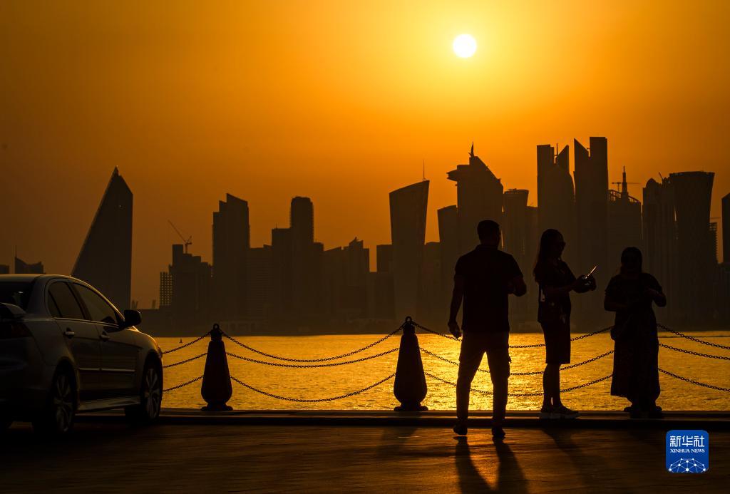 这是7月6日在卡塔尔多哈拍摄的日落景象。