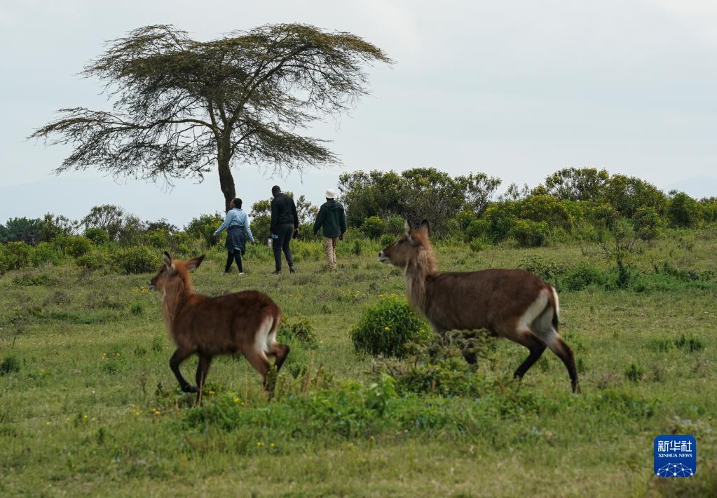7月8日,游客在肯尼亚奈瓦沙湖新月岛上游览。