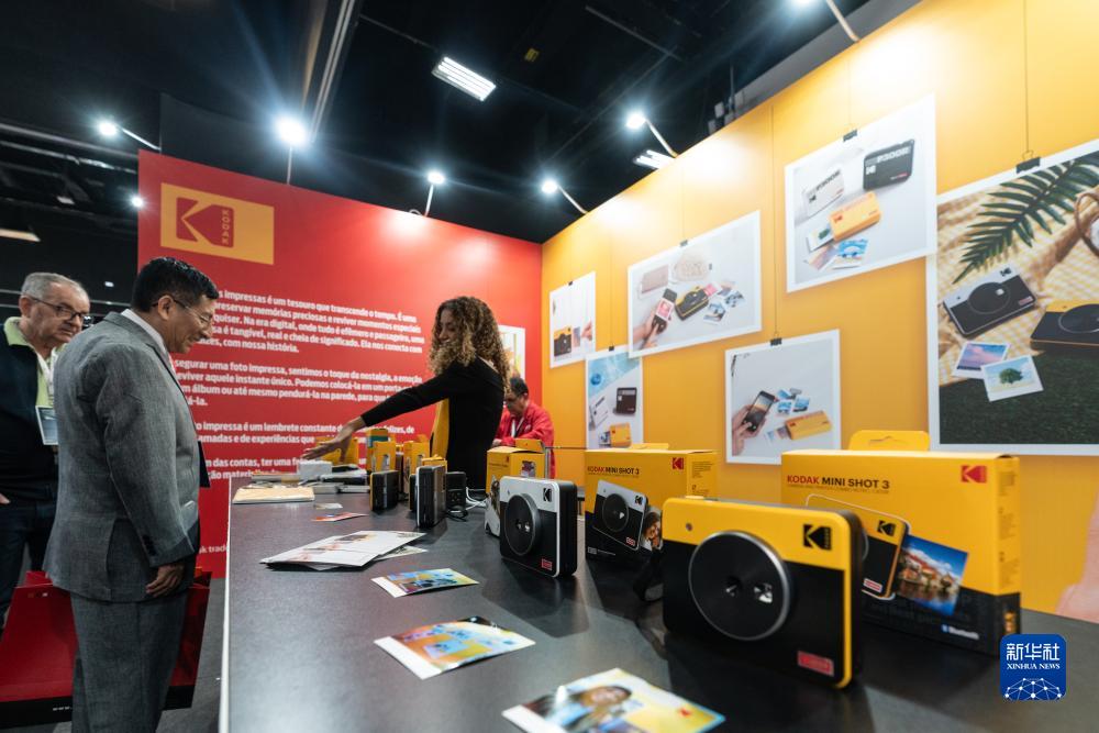 7月10日,在巴西圣保罗举行的国际消费类电子及家用电器产品展览会上,参观者在柯达公司展台了解即时成像相机。
