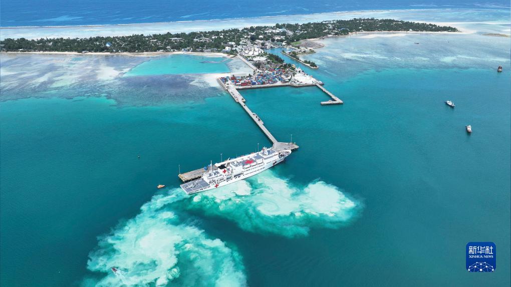 7月15日,中国海军“和平方舟”号医院船靠泊基里巴斯塔拉瓦港。新华社发(桂江波 摄)
