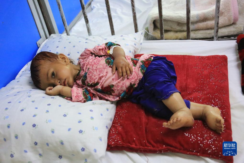7月10日,营养不良患儿在阿富汗喀布尔英迪拉·甘地儿童健康研究所接受治疗。