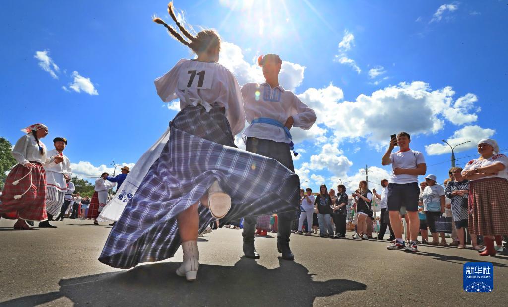当日,一场民族舞蹈比赛在白俄罗斯维捷布斯克举行。新华社发(任科夫摄)