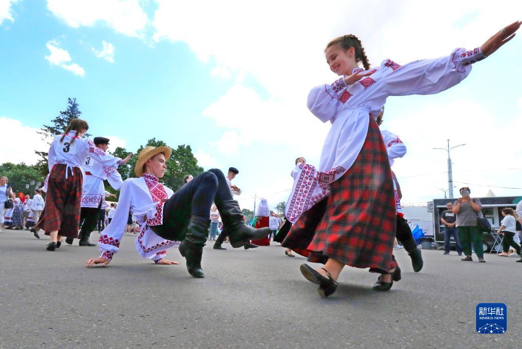 当日,一场民族舞蹈比赛在白俄罗斯维捷布斯克举行。新华社发(任科夫摄)