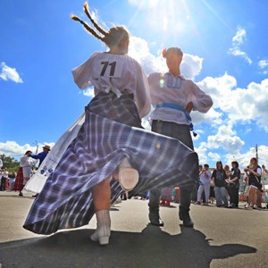 7月15日,在白俄罗斯维捷布斯克,参赛者展示舞蹈。