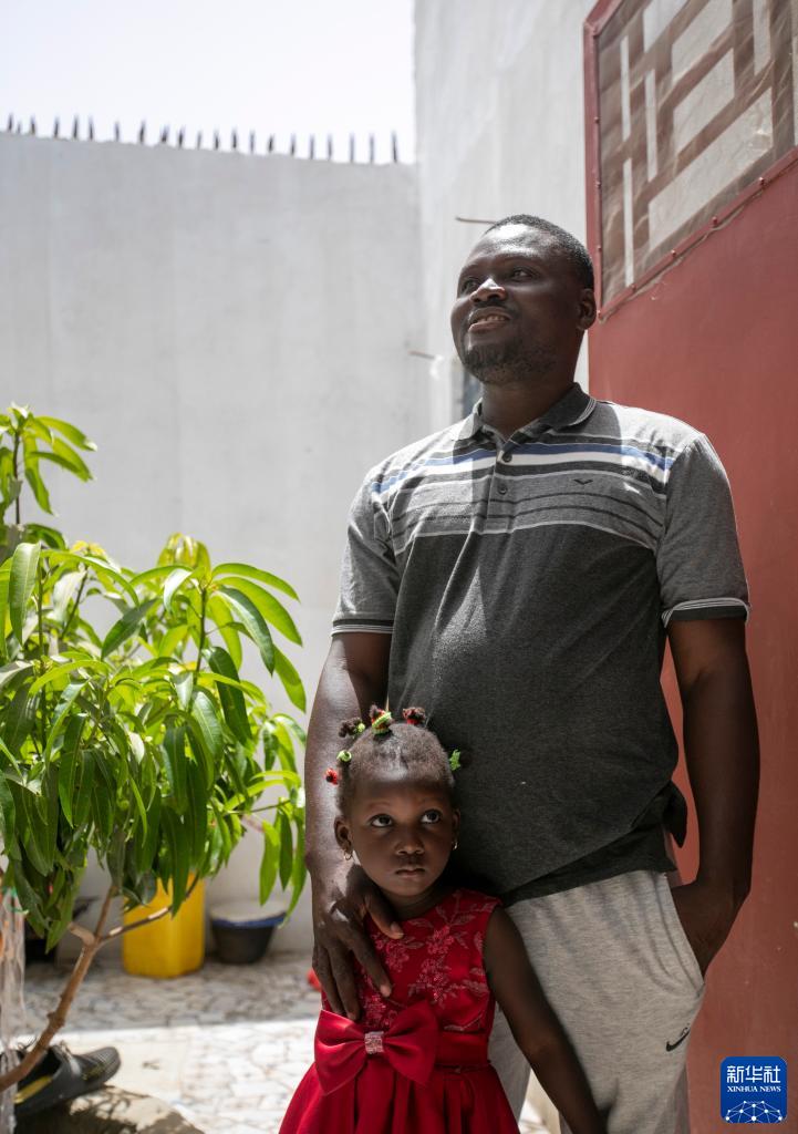 5月13日,苏信和女儿在塞内加尔捷斯的家中。新华社记者 李亚辉 摄