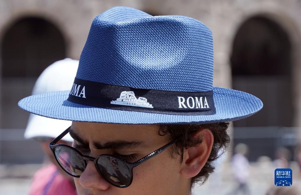 7月18日,一名戴遮阳帽的游客在意大利罗马游览。