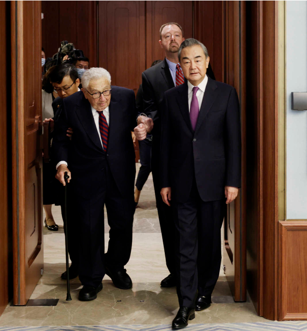 2023年7月19日,中共中央政治局委员、中央外办主任王毅在北京会见美国前国务卿基辛格。