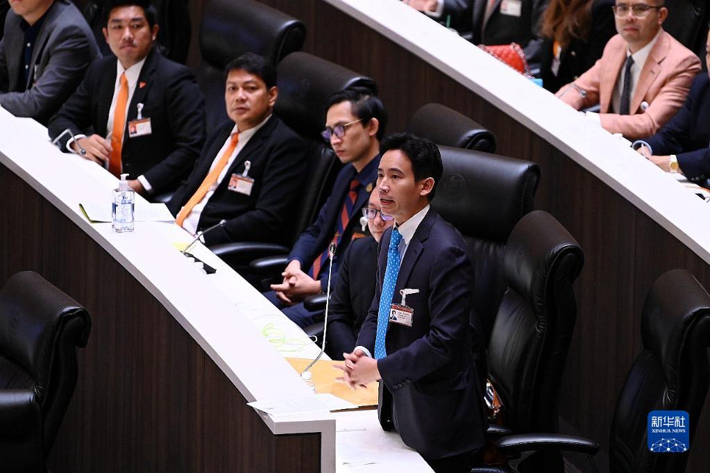 7月19日,在泰国首都曼谷,远进党党魁皮塔在国会发言。