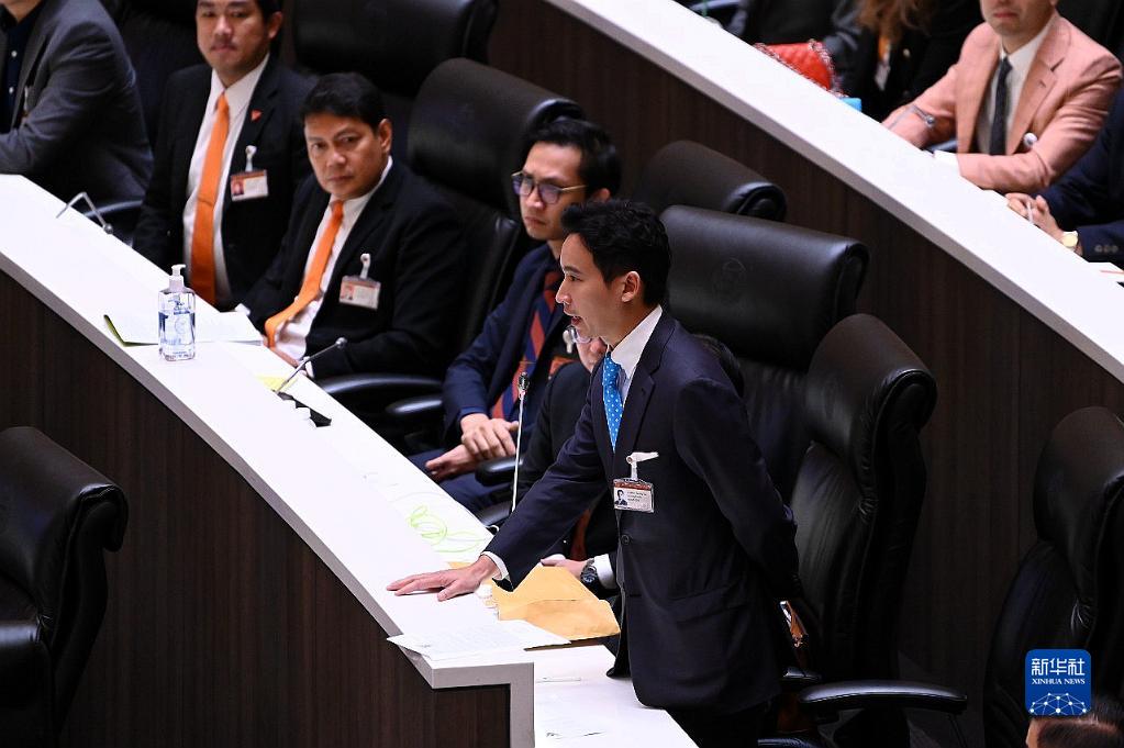 7月19日,在泰国首都曼谷,远进党党魁皮塔在国会发言。