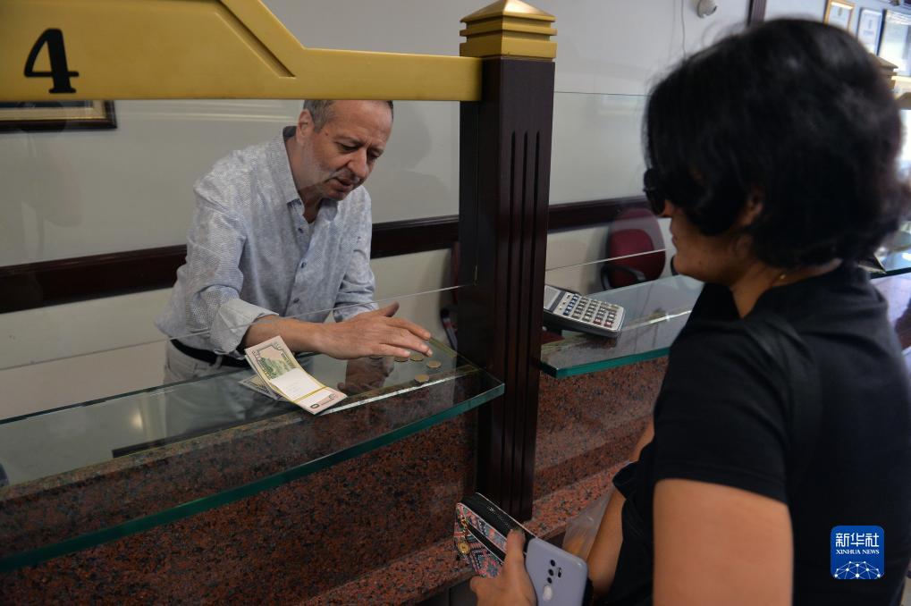 7月20日,一名女子在土耳其安卡拉一个货币兑换点换钱。