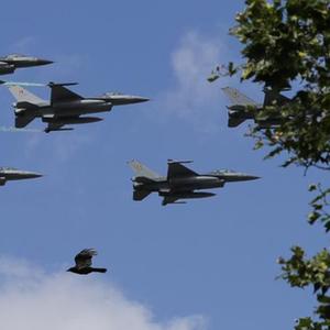 7月21日,在比利时布鲁塞尔,多架F-16战机参加国庆日阅兵式。