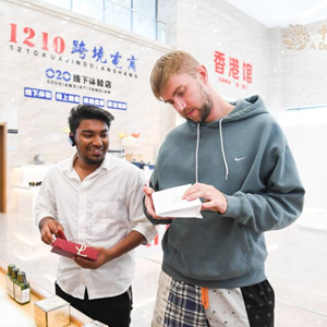 “在这我们体验到了一种与众不同的购物方式”,采访团成员﹑印度籍自媒体人夏雨表示,“在这里,我们可以买到俄罗斯的产品,也可以买到珲春当地的产品,如人参咖啡、当地品牌的洗衣粉等。从食品饮料、美容产品、装饰品到文化产品,这里应有尽有。”