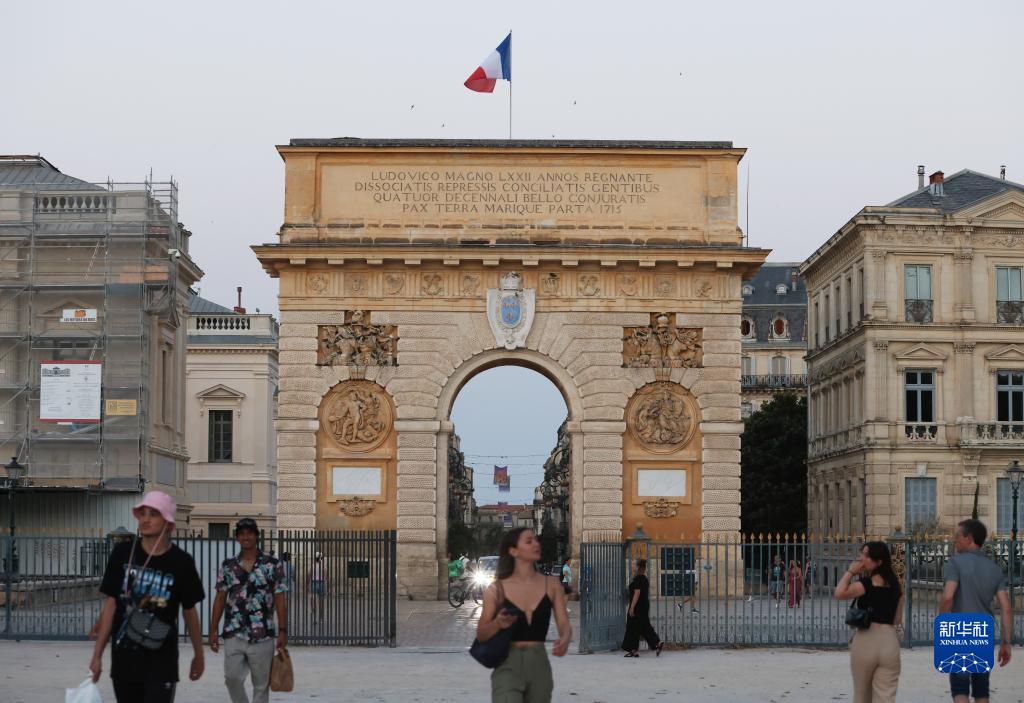这是法国蒙彼利埃的凯旋门(7月17日摄)。