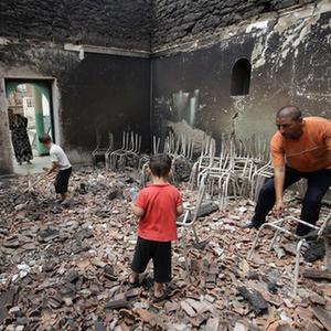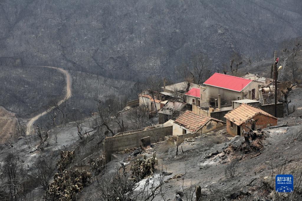 这是7月25日在阿尔及利亚贝贾亚省拍摄的被野火烧毁的房屋。