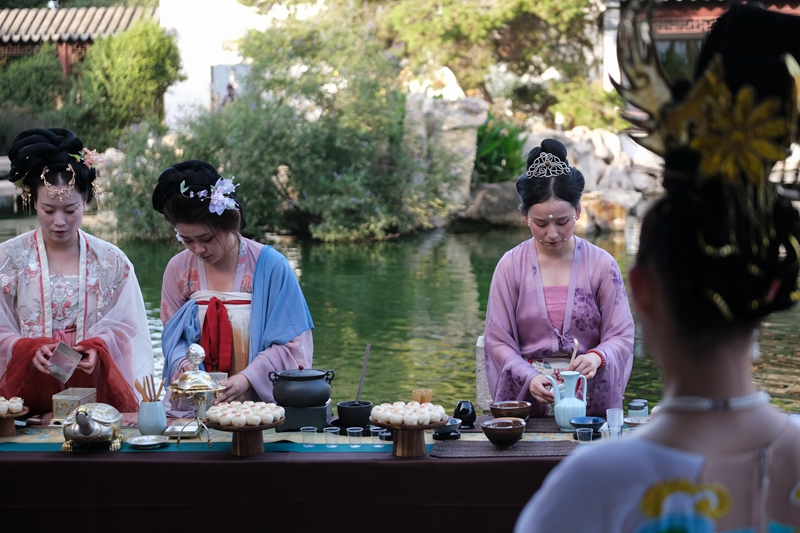 在音乐会开幕之前,观众还在静园里参加了“茶和天下·茶宴雅集”活动,中国茶艺师们献上的唐宋茶艺表演,让观众得以品茶香、尝茶点、赏茶艺,亲身感受茶宴的独特魅力,体验中国传统茶文化。