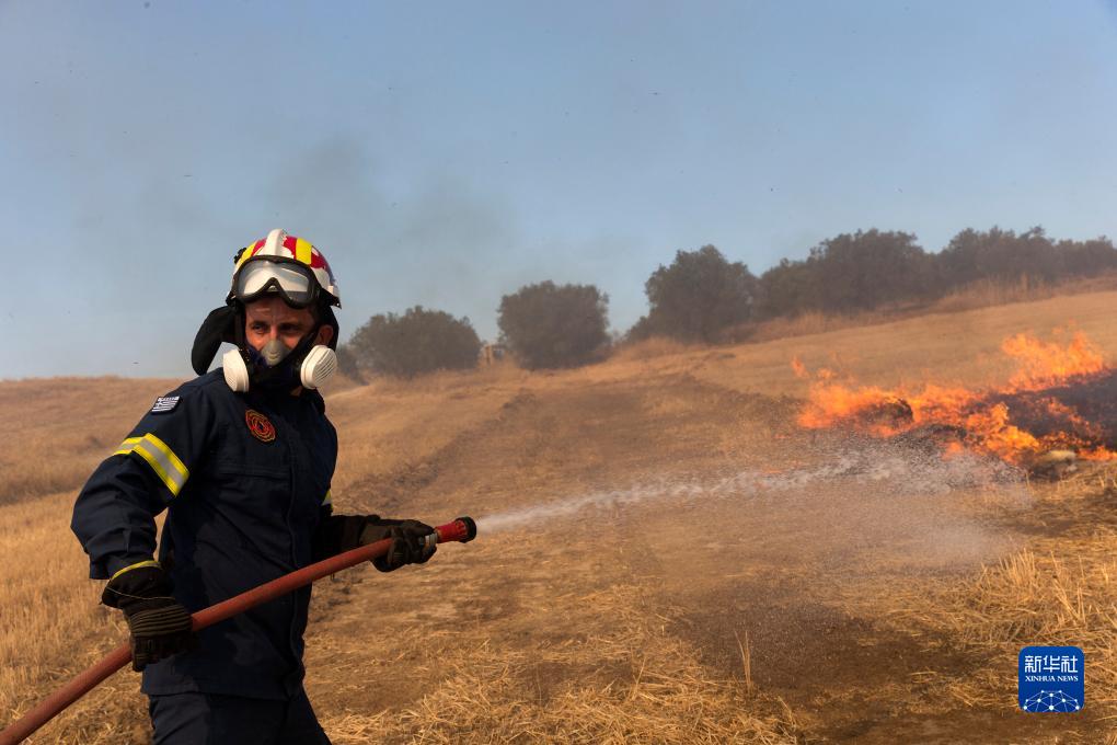 7月27日,消防员在希腊沃洛斯郊外参与灭火。新华社发(马里奥斯·罗洛斯摄)