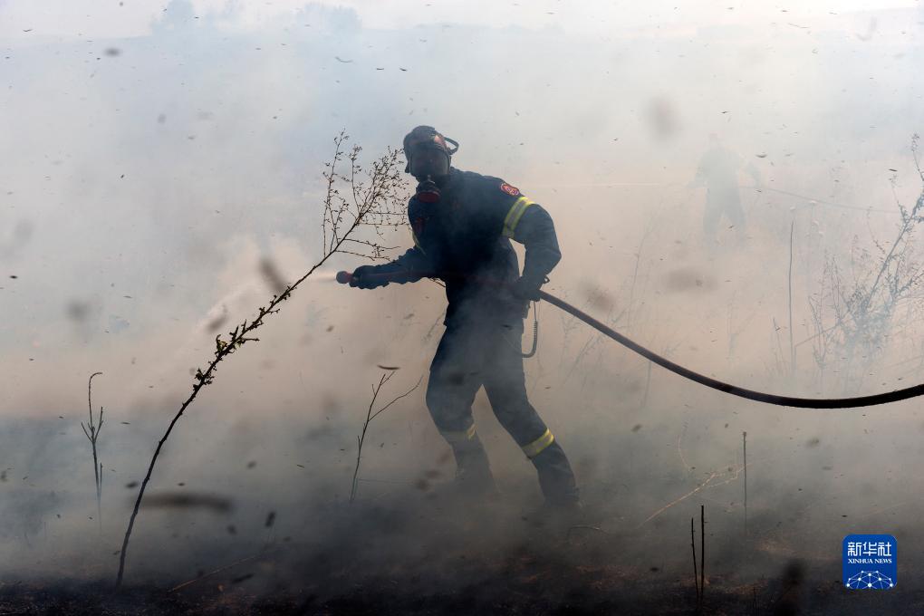 7月27日,消防员在希腊沃洛斯郊外参与灭火。新华社发(马里奥斯·罗洛斯摄)