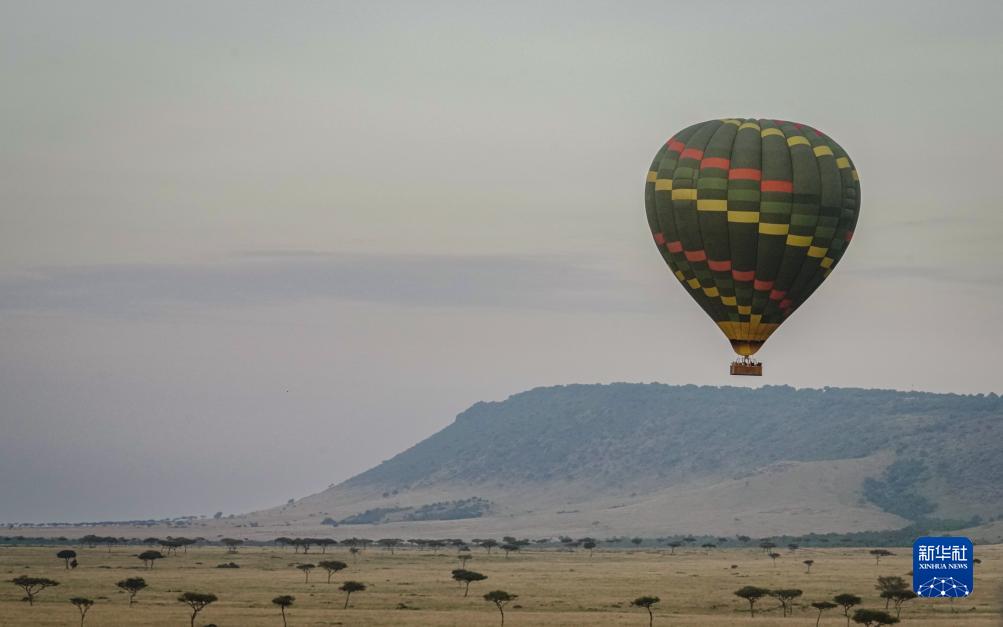 这是7月14日在肯尼亚马赛马拉国家保护区拍摄的热气球。