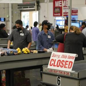 6月29日,顾客在美国旧金山湾区福斯特城一家超市结账。新华社记者吴晓凌摄