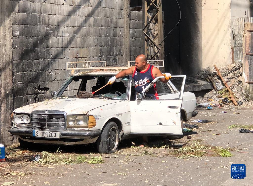 8月1日,在黎巴嫩南部西顿市附近的艾因·哈勒瓦难民营,一名巴勒斯坦男子查看汽车受损情况。